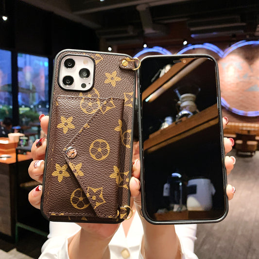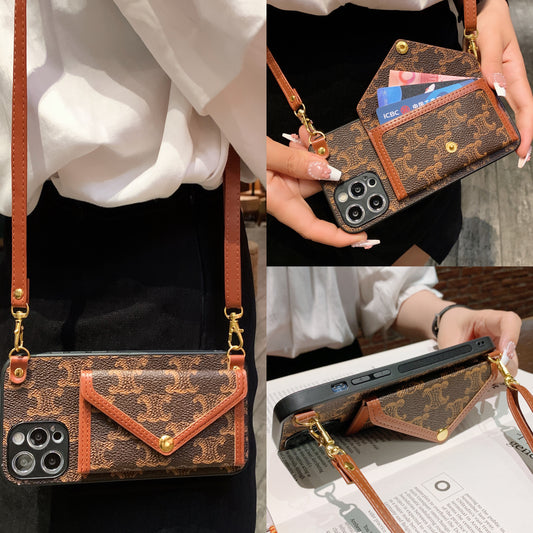 Orise Easy Luxury PU leather Crossbody Wallet case for iPhone ,Flip Card Pouch Cover Soft Silicone Case Long Shoulder Strap