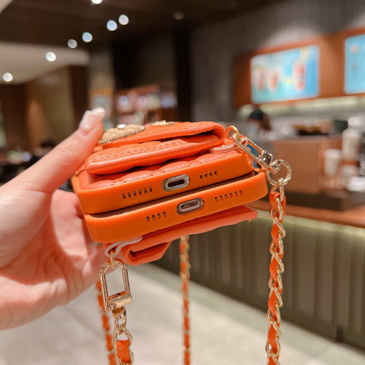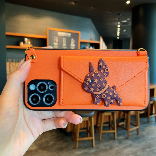 Oriseeasy iPhone case 3D lion card holder crossbody with long strap