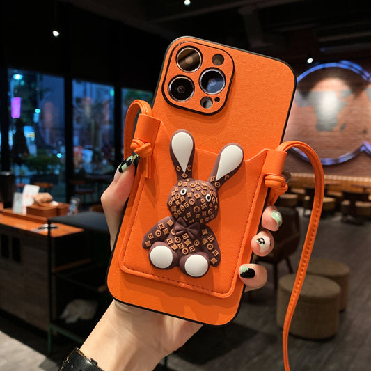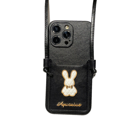 Orise Easy Crossbody iPhone Case PU Leather Long Strap Stand 3D Cute Rabbit Bunny