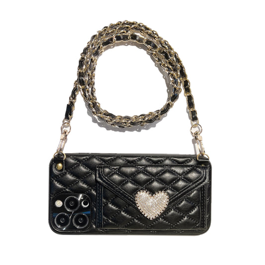 Orise Easy Crossbody Wallet case for iPhone Long Shoulder Strap and Bling Rhinestone Sparkle Loving Hearts for girls women